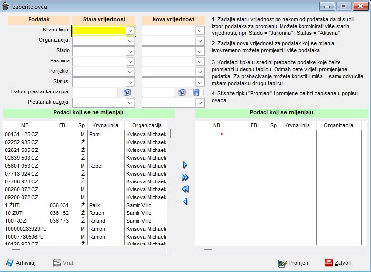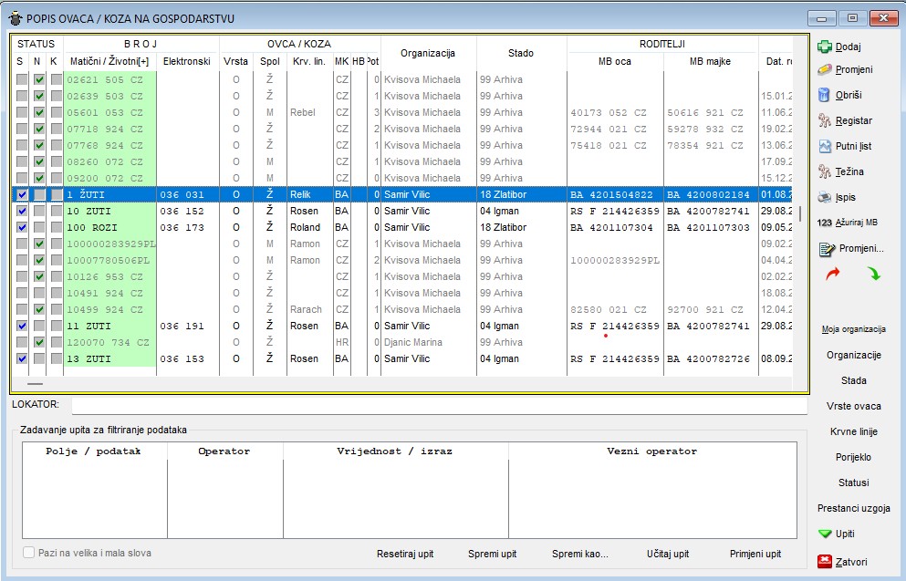 Inovativni sustav filtriranja podataka koristi intuitivan 'povuci i pusti' pristup, gdje korisnik jednostavnim potezom miša može izdvojiti točno one životinje koje ga zanimaju. Bilo da trebate popis svih ovnova određene pasmine u pojedinom stadu ili pregled životinja specifične krvne linije, do informacija dolazite u nekoliko klikova.