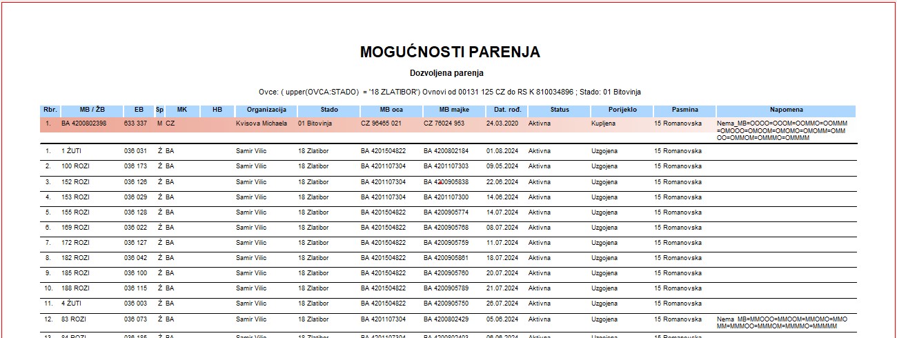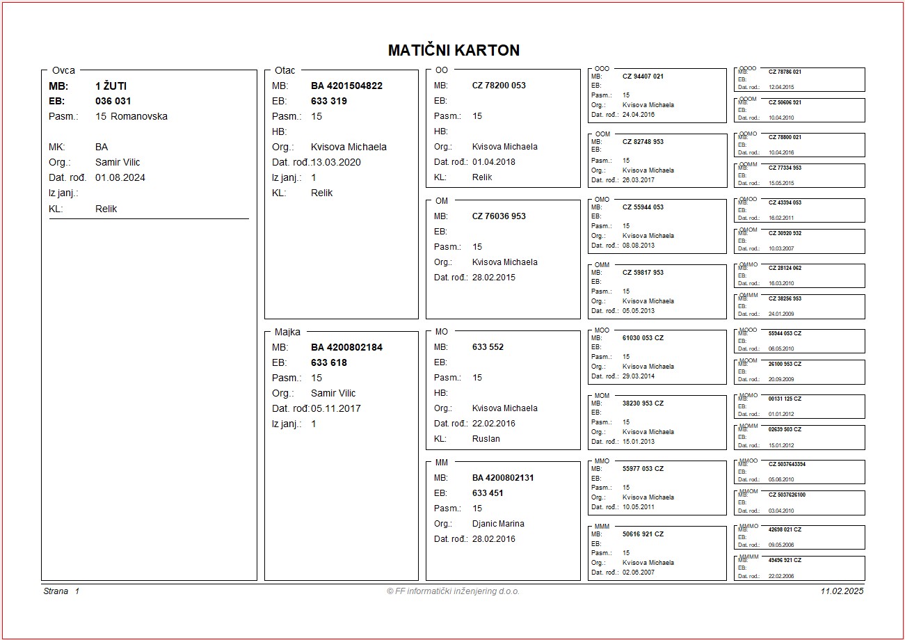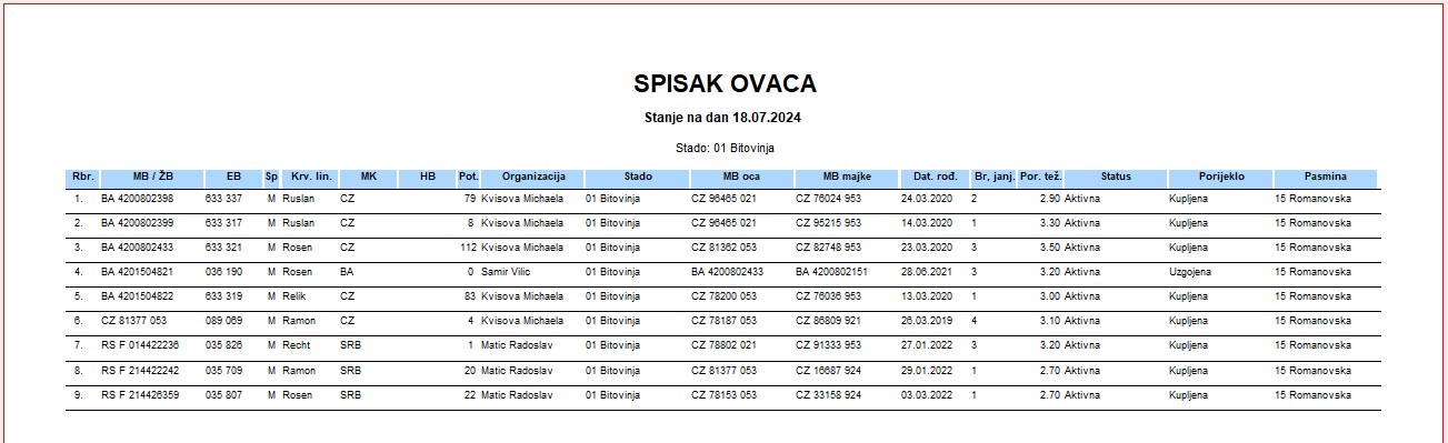 Program dolazi s već ugrađenim šifrarnicima za pasmine, krvne linije i druge standardne podatke, čime je omogućeno trenutno korištenje bez dugotrajnog početnog unosa podataka. Svi ispisi i izvještaji mogu se prilagoditi potrebama gospodarstva, pružajući uvijek relevantne informacije za donošenje uzgojnih odluka.